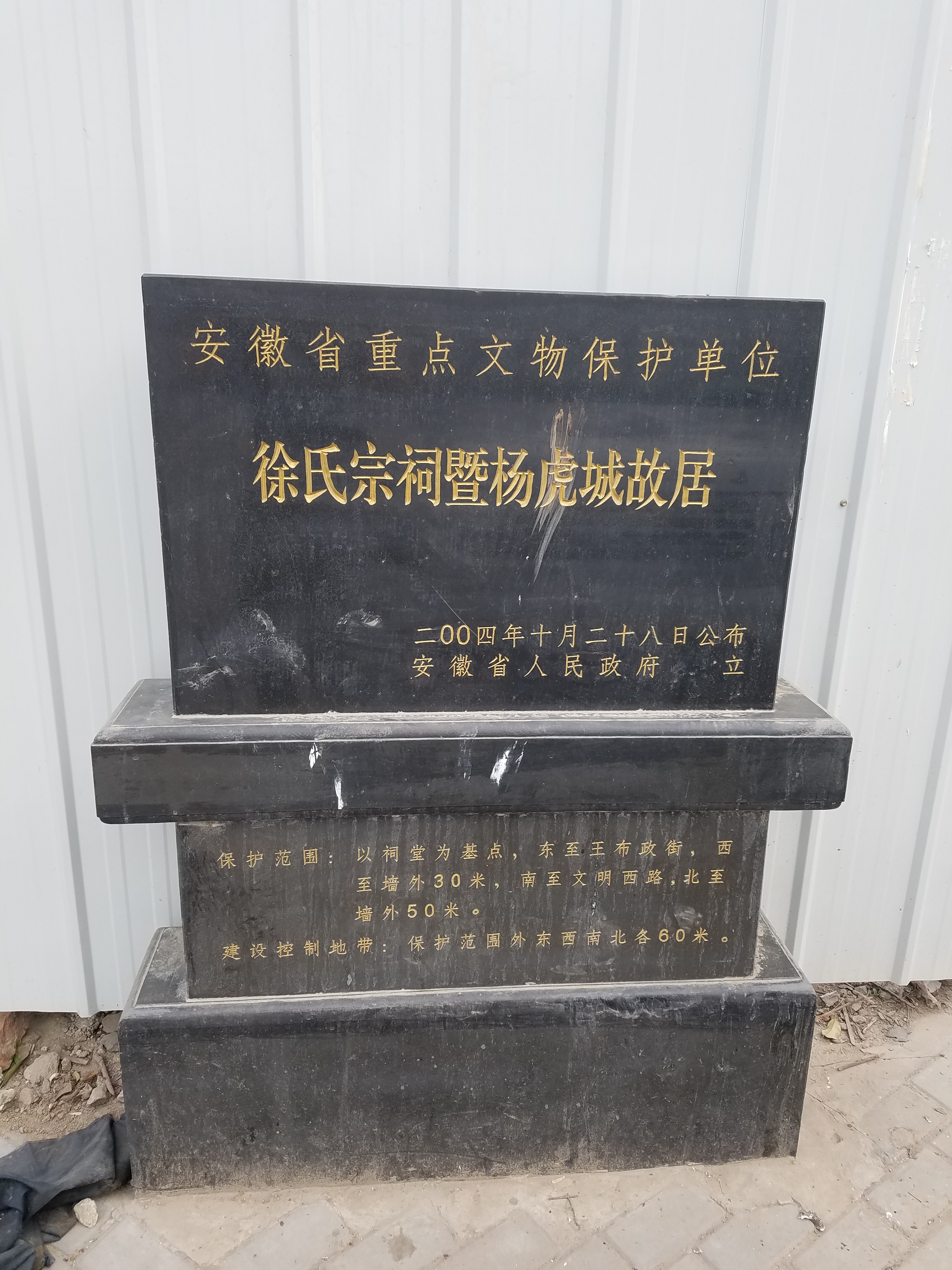 徐氏宗祠暨杨虎城故居为清代建筑,位于县城文明西路,是清道光年间两广总督兼通商大臣、一等子爵徐广缙的家祠。原祠堂南北长60米,东西宽30米,占地1800平方米。依次建有祠门、腰楼、祠殿、东西配房等,有清代大学士刘墉题名“徐氏宗祠”、“授忠晋爵”匾额。2004年被安徽省政府公布为第五批省级重点文物保护单位。